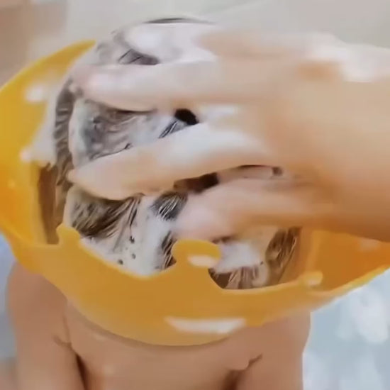 - Fürdés közben a sapka elvezeti a vizet és sampont a baba arcától távol.